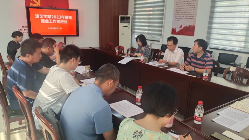 在晓书楼会党建议室召开2023年暑期就业工作推进会。院党委书记张建新、党委副书记张明、副院长何艳冰,相关系室负责人、党支部书记,毕业班辅导员参加会议,会议由张明主持。