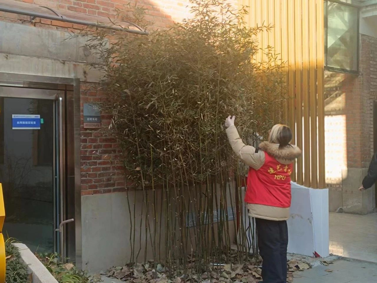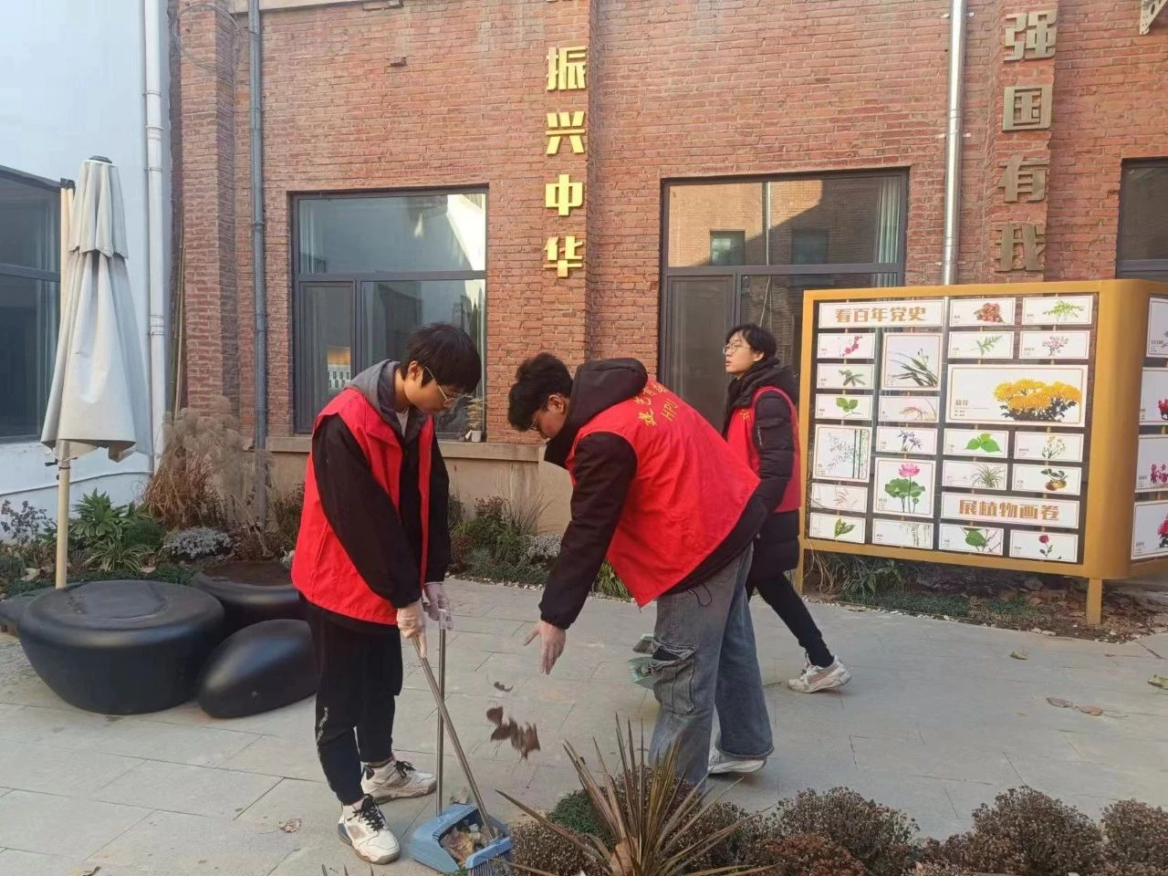 志愿者们在负责人的带领下依次领取清洁工具,来到各自的负责区域有序开展工作。天气虽然骤冷,但大家打扫的干劲依旧不减。学生们分工明确,相互帮助,密切配合,以积极热情的态度,充分发挥不怕脏、不怕累的优良作风,认真细致的打扫每一个角落,确保卫生不留死角,在经过一个小时的清扫后,党建花园重焕生机。
