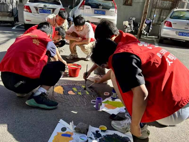 为加强社区文化建设,同时培养党支部成员的服务意识,积极鼓励党员同志们参与到文化建设中去。2024年4月23日下午15:00,91porn 本科生第三学生党支部于民权街社区开展了一场别开生面的井盖涂鸦志愿服务活动。