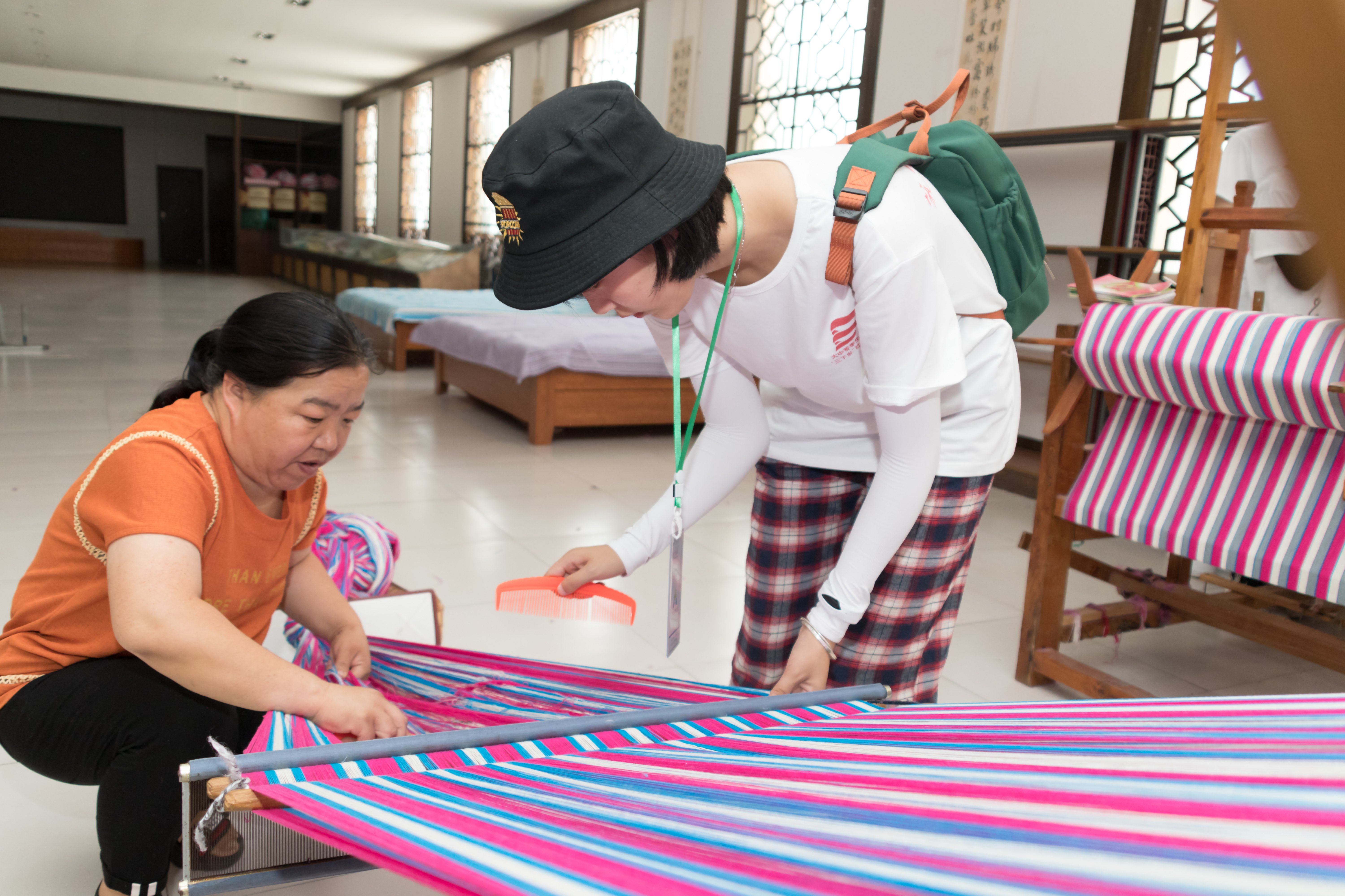 队员现场参观潞绣制作过程