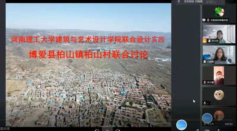 长闫海燕,柏山村村民委员会主任刘忠瑞、总支部副书记球文平、村民委员会委员刘新凯等,同时还有建筑学、城乡规划、风景园林、工业设计、视觉传达、环境设计、旅游管理等40余名专业师生参会。受疫情影响,本次讨论会在线上举办。