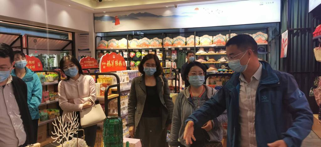 团队参观考察了云台山游客中心的文创产品商店和游客服务中心,对云台山文创产品的设计和创新提出了合理化建议,也对景区服务设施和服务体系进行了深入的了解。