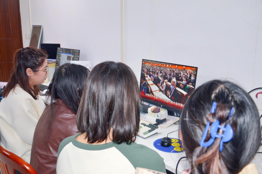 在集中收看现场,总书记对“过去五年的工作和新时代十年的伟大变革”、“开辟马克思主义中国化时代化新境界”、“新时代新征程中国共产党的使命任务”、“加快构建新发展格局,着力推动高质量发展”等多方面进行了详细阐述,同学们认真聆听习近平总书记所作的报告,不时报以热烈的掌声。大家一致认为,大会报告统揽全局、高瞻远瞩,思想深邃、内涵丰富,鼓舞人心、催人奋进,特别是对教育科研事业发展作出的重大部署给我们指明了前进方向。