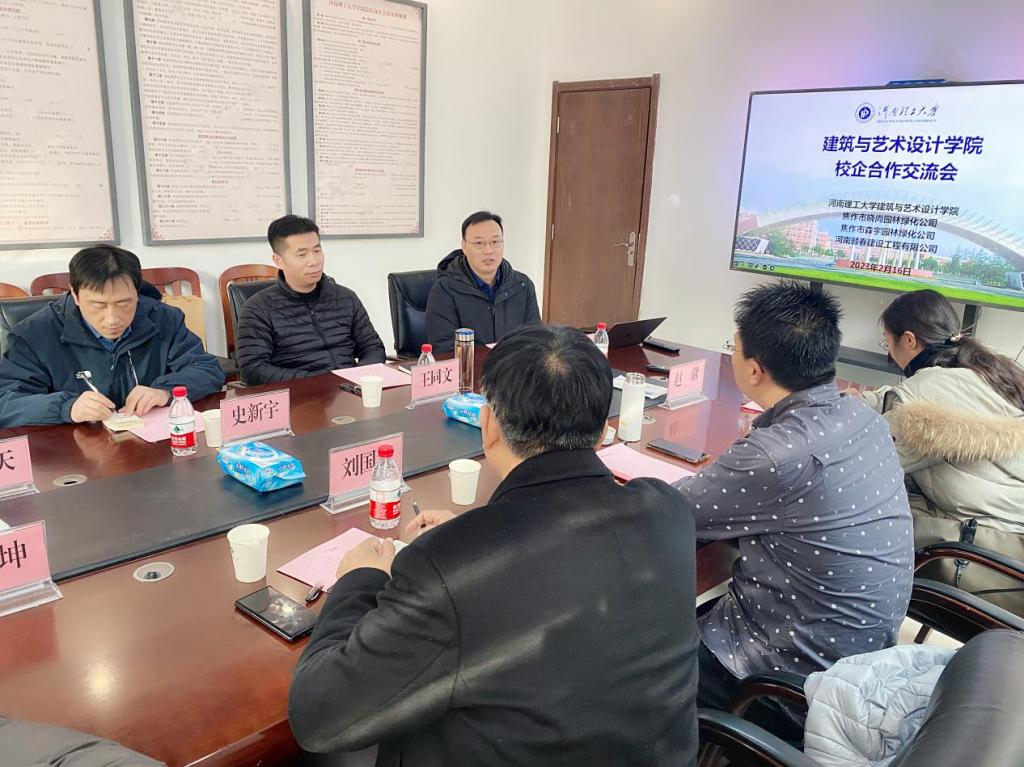 与焦作市园林企业建立了良好的合作基础,双方已合作开展一系列项目合作,并取得了丰硕的成果。交流会上,三家焦作园林企业负责人分别就科技研发、人才培养、项目合作、专业竞赛等内容进行了探讨,提出了合作的领域和方向,尤其是乡村振兴、乡村设计等方面。环境设计系主任王维天、城乡规划系主任史新宇分别就设计师进课堂、毕业设计、项目合作和学科竞赛等方面进行了交流。王同文院长介绍了城乡规划、环境设计和风景园林专业(方向)的基本情况,就人才培养、学科特色与科研优势等方面进行了介绍,尤其是风景园林硕士点的授权为合作奠定了良好的基础,共同做好“人”和“事”方面的合作,推动校企互动交流不断深化,形成常态化和制度化,推动合作落地生根。
