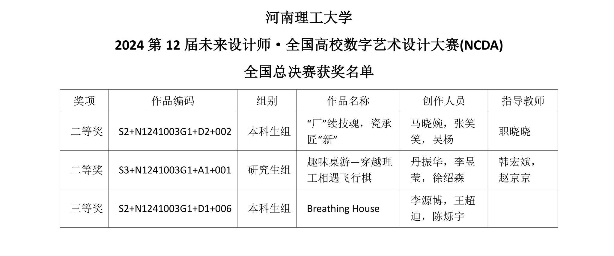 2024年第十二届未来设计师·全国高校数字艺术设计大赛(NCDA)成绩近日公布。该赛事由工信部人才交流中心主办,已纳入中国高等教育学会发布的《全国普通高校学科竞赛排行榜》,“学习强国”平台支持,对接联合国国际赛的国家级大学生竞赛。本届大赛共有1891所高校参赛,共收到298763件作品,设立29个省级赛区;985、一流大学参赛率达95.2%,设计学学科评估C-以上高校100%参赛;参赛作品经过校级赛-资格赛-省级初赛-省级决赛-全国总决赛多轮竞赛,分别产生省级赛和全国赛获奖作品。
