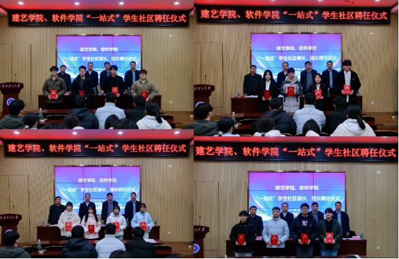 向与会师生表示诚挚欢迎,并阐述了“一站式”学生社区建设在深化育人改革、服务学生成长方面的重要意义。随后,张明与张艳明先后宣读各楼宇的聘任名单,标志着“一站式”学生社区学生骨干正式履新。
